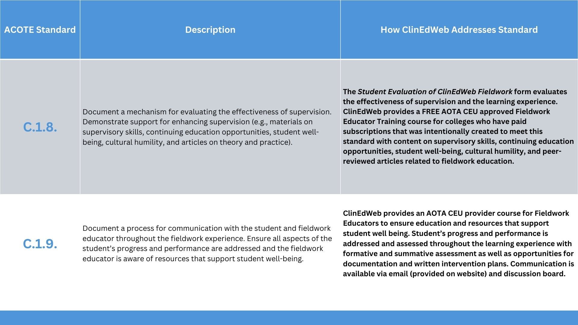 Level II Fieldwork Educator Responsibilities and Requirements C.1.13., C.1.14.